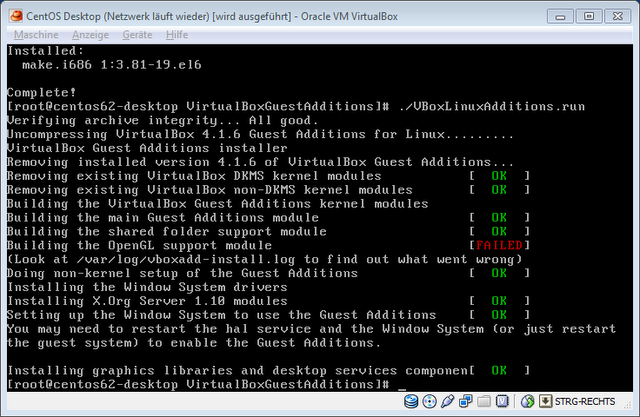 Noch ein Schritt zum Erfolg. Immer noch nicht fertig. Ich stiess auf die Fehlermeldung: “Building the OpenGL support module” [FAILED]