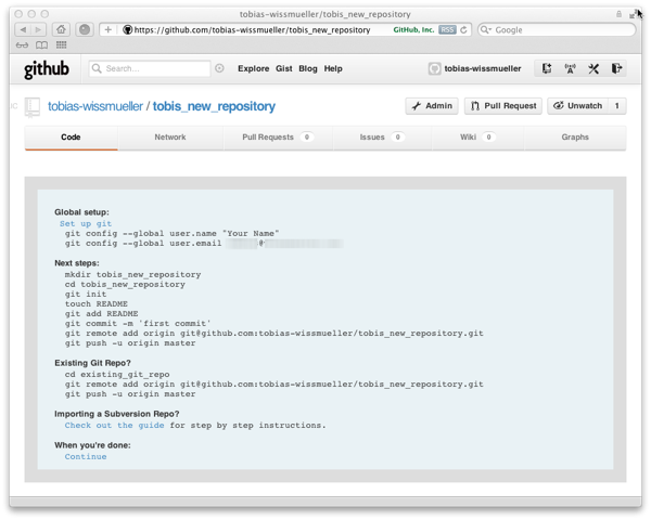 Nachdem du das getan und ein neues Repository erstellt hast, siehst du einen Bildschirm, der dir alles sagt, was du von dort an wissen musst. Zumindest für den Anfang.