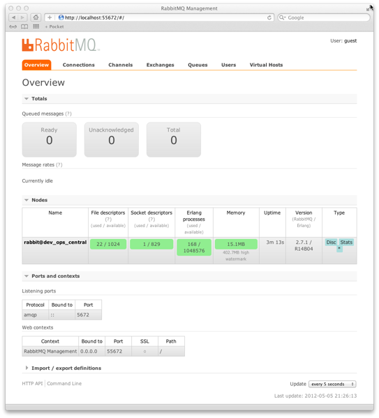 Zuerst werden wir eine altmodische manuelle Installation und Konfiguration von RabbitMQ durchführen. Es gibt eine schöne Anleitung beim Sensu-Projekt auf GitHub.