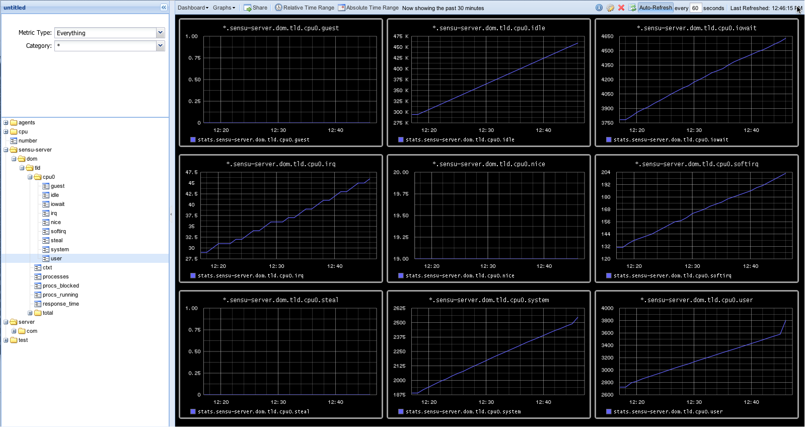 }In Graphite habe ich dann einige dieser Metriken ausgewählt, um sie auf dem Dashboard zu visualisieren: