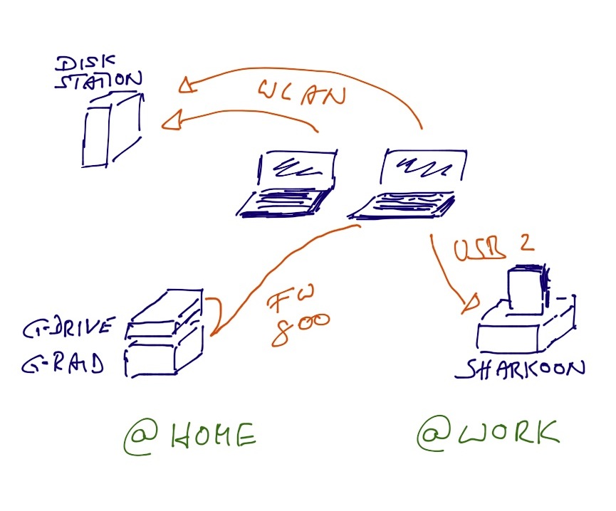 Einfach! Irgendwann werde ich ein weiteres Laufwerk bekommen, auf das ich alle meine Daten von meinem G-RAID spiegeln werde. Es wird zum Beispiel zwei Wochen im Büro bleiben; danach bringe ich es nach Hause, übertrage die Daten und bringe es zurück ins Büro und schließe es dort ein.