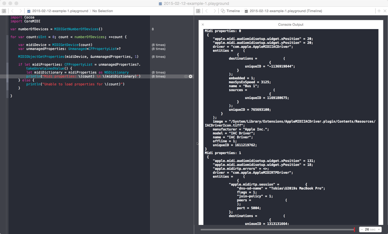Hat es funktioniert? Grossartig! Herzlichen Glueckwunsch zu deinem ersten funktionierenden Core MIDI Code.