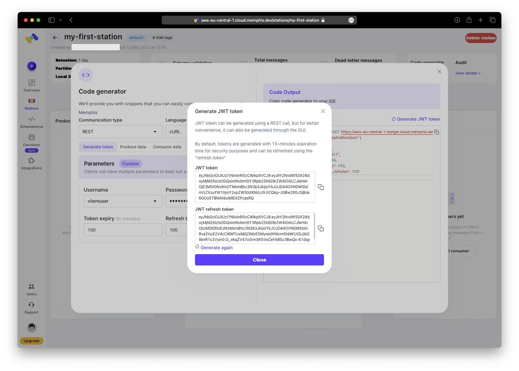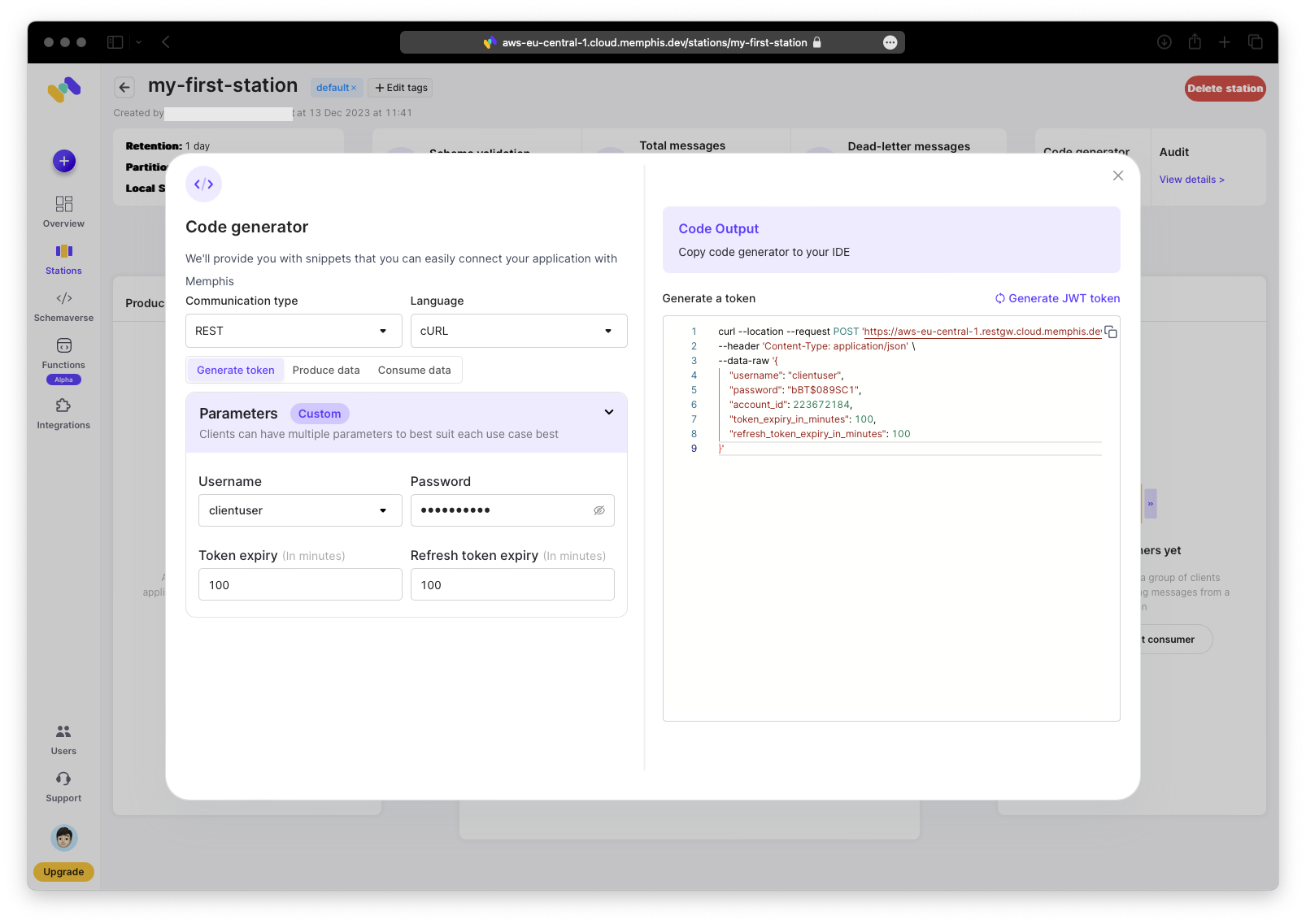 % curl --location --request POST 'https://aws-eu-central-1.restgw.cloud.memphis.dev/auth/authenticate' \